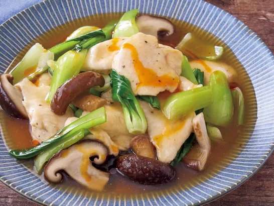 煮る時間わずか2分。鶏むねがしっとり、つるん!『鶏胸肉と青梗菜のオイスター煮』