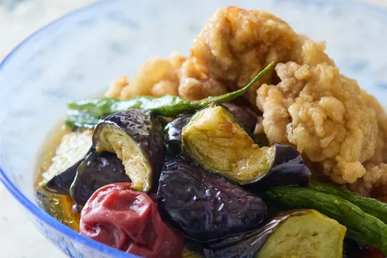 めんつゆと梅干しで味が決まる!『なすの梅揚げ浸し』レシピ/そうめんのつけ汁にも