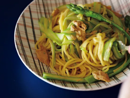 アスパラは〈ひらひら〉が正解『アスパラとツナの和風レモンしょうゆパスタ』レシピ/小堀紀代美さん
