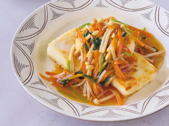 【節約だけど、満腹おかず】肉なしでも家族ウケ抜群!『揚げ焼き豆腐の野菜あんかけ』