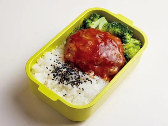 レンチン4分でふっくら絶品ハンバーグが作れる⁉焼かない『ケチャップハンバーグ弁当』