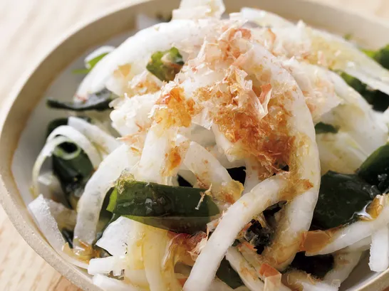 【5分副菜】今だけのお楽しみ。簡単すぎておいしい『新玉ねぎとわかめのおかかサラダ』