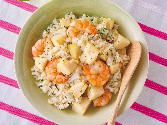 子供が喜ぶ、たけのこレシピ♪バター香る『たけのことえびの炒めピラフ』ゆで筍で簡単