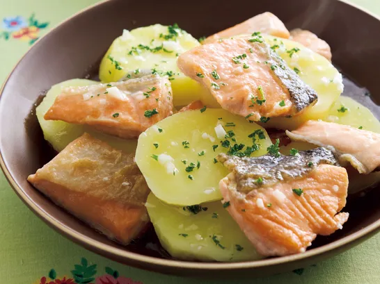 背徳的なウマさ…濃厚にんにくバター『鮭とじゃがいもの塩バター煮』|フライパンレシピ