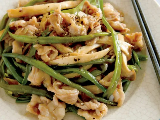 レンジで楽するレシピ!シャキシャキ食感に感動『豚バラといんげんのオイスター炒め』
