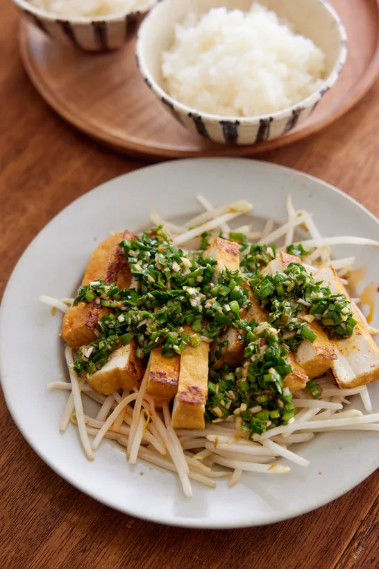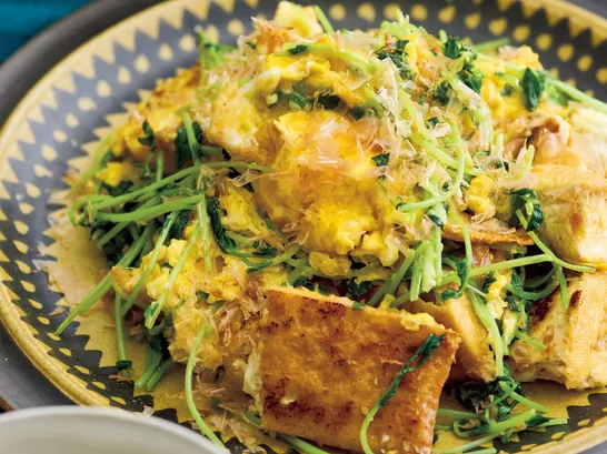 節約素材3つで簡単〈脂肪燃焼〉おかず!『厚揚げと豆苗のチャンプルー』のレシピ