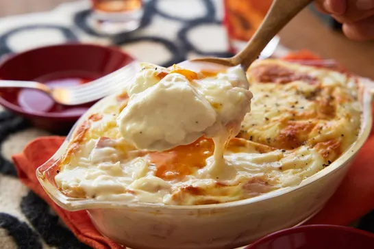 これはもはや、飲めるグラタン。節約食材で『豆腐とベーコンのカルボナーラグラタン』