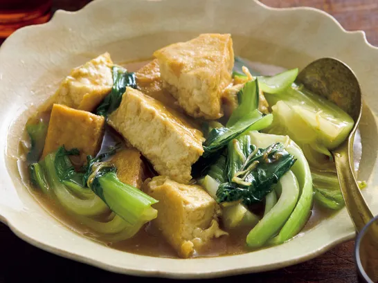 【1人157kcal】低カロ・肉なしでも絶品!『厚揚げと青梗菜のオイスター煮』レシピ