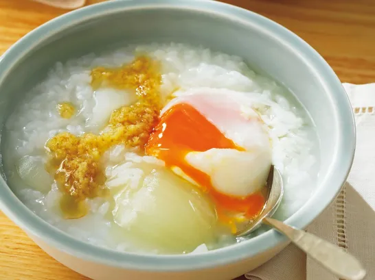 ごちそう疲れの胃腸に嬉しい。薬膳がゆ『とろとろ玉ねぎとしょうがの温たまがゆ』レシピ
