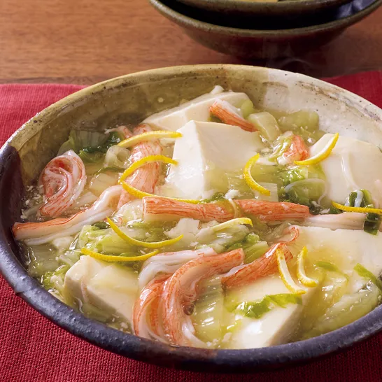 胃にやさしく体ポカポカ。しみじみおいしい『豆腐と白菜、かにかまのゆず煮』のレシピ