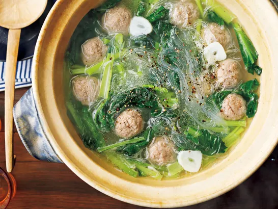 家にある材料で作れる黄金比の〈鍋つゆ〉レシピ/野菜が無限にイケる鶏団子のうま塩春雨鍋