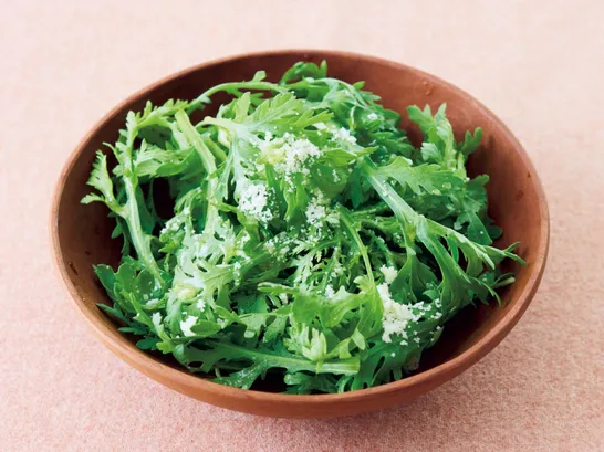 生のままがウマい!粉チーズをかけるだけの『春菊のチーズサラダ』【ほろ苦やみつき】