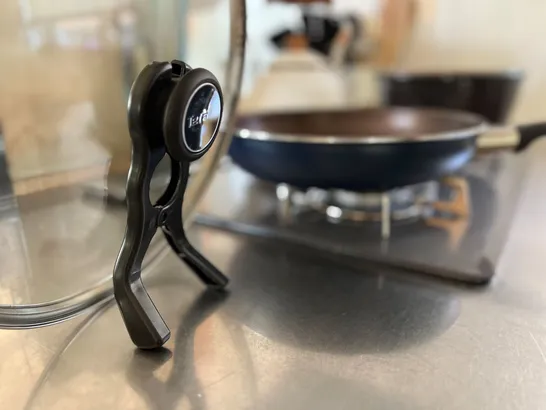 家じゅうの鍋ふたが立った!「DAISO 挟む鍋ふたスタンド」で調理中どこ置く問題が解消♪