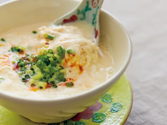 レンチンだから毎朝続く。豆乳1カップのアイディアスープ4選【たんぱく質7g】