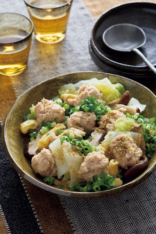 キャベツ×鶏ひき肉で。フライパンで簡単『鶏塩ちゃんこ蒸し煮』の作り方【肉団子】