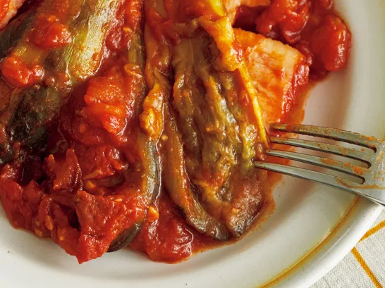 【具は2つ・トマト缶で】濃厚、とろける「なすとベーコンのトマト煮」の人気レシピ