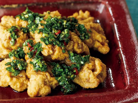 サクサク×じゅわ~の競演!『豚天の中華風にらだれかけ』のレシピ【油3cmで♪】