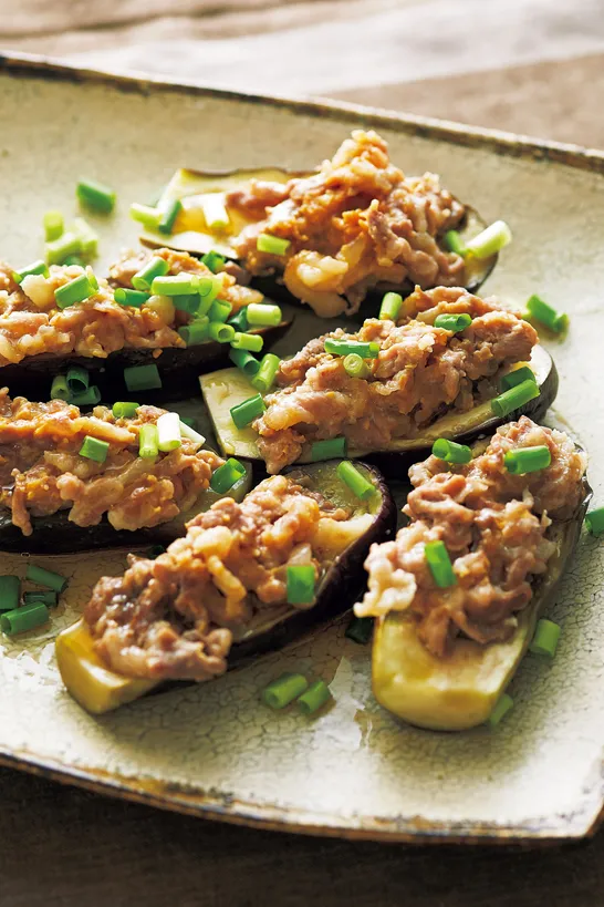 秋なすが、ふっくらとろとろ!『みそ豚のっけ蒸しなす』のレシピ【フライパンで】