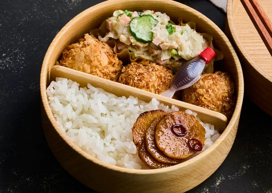 レンチンで楽!『栗原心平さんの里芋ツナコロ弁当』のレシピ【里芋ポテサラも】