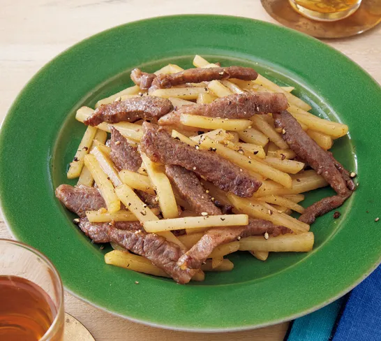 牛肉ちょっとで大満足!『牛肉とじゃがいものオイスターバター炒め』レシピ【にんにく風味】