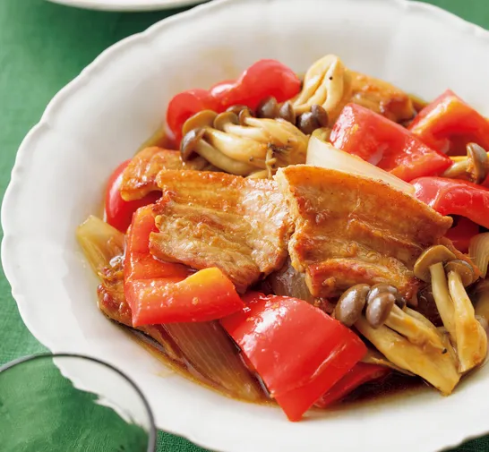 たれの配合が抜群、白飯がすすむ!『豚バラとパプリカの中華うま煮』【肉も野菜もとれる】