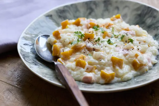 【夏風邪に効くレンジ薬膳レシピ】齋藤菜々子さんの『かぼちゃとベーコンのリゾット』