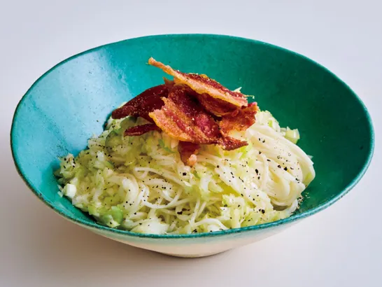 夏のそうめん余ってたらやってみて『ねぎレモン塩あえ麺ベーコンのっけ』洋風アレンジ