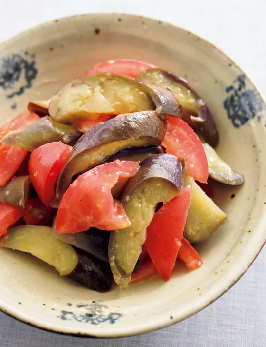 【5分で簡単副菜】レンチンしてあえるだけ『蒸しなすとトマトのナムル』【食材2つ】