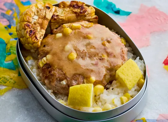 旬満喫!『栗原心平さん流★とうもろこしバーグ弁当』【レンチンバターコーンライス】