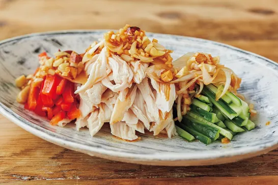 しょうがの風味が◎!さっぱりヘルシー副菜『鶏ささみのおろしきゅうりだれ』の作り方