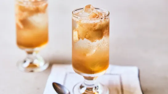 桃と梅酒ってこんなに合うの⁉ ゴロッと果肉がおいしい『桃の梅酒ソーダ』【今井真実さんレシピ】