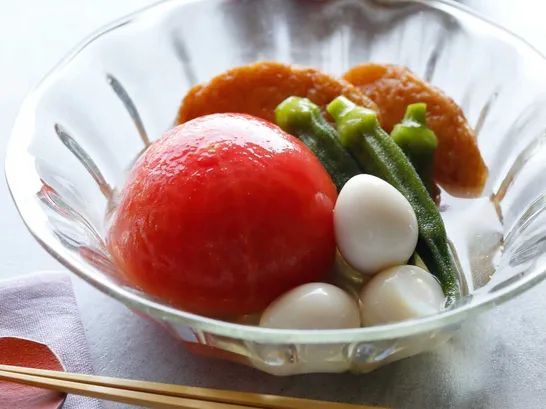 だしのうまみがしみわたる『トマトとオクラの冷やしおでん』のレシピ【夏野菜を満喫】