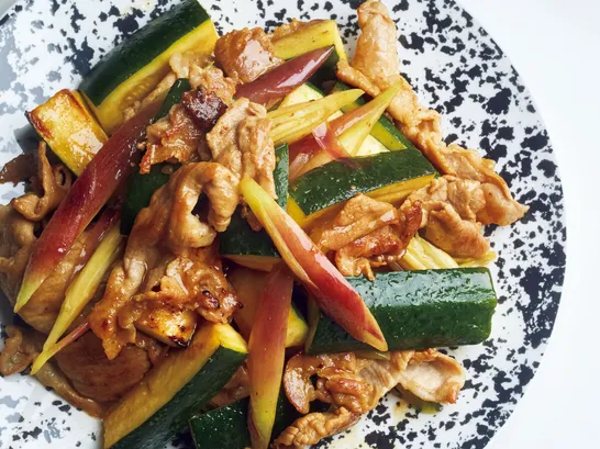【ズッキーニ×豚こまの簡単レシピ】ズッキーニと豚肉のバタポン炒め【おトク素材】