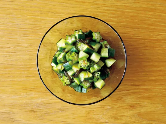 夏にぴったりのねばねば副菜!『オクラときゅうりの塩昆布あえ』のレシピ【作り置きも】