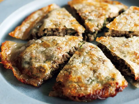 ライスペーパーではさんで焼くだけ!『大葉20枚入り円盤餃子』のレシピ【焼いてカリッカリ】