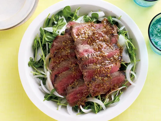 【父の日にも!】しっとり焼くコツ伝授『ごちそうステーキサラダ』のレシピ【新玉&豆苗がもりもり食べられる】