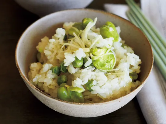初夏のごちそう『そら豆×グリーンピース×新生姜の炊き込みご飯』のレシピ【ワタナベマキさん】