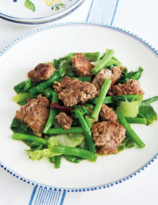 パックから直接フライパン!『ひき肉とレタスのペペロンチーノ』の簡単レシピ【ガツンとおいしい】