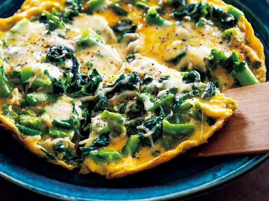 【春野菜レシピ】華やかでおしゃれな『菜の花としらすのチーズオムレツ』|ご飯にもお酒にも◎