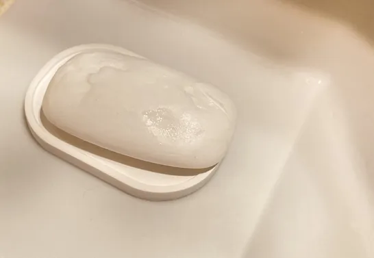 110円でこれが買えるとは!DAISOの「珪藻土配合 石けん置き」が理想的。