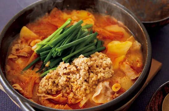 【トリプル発酵食品で免疫力アップ!】体ぽかぽか鍋『キムチみそ納豆チゲ』のレシピ