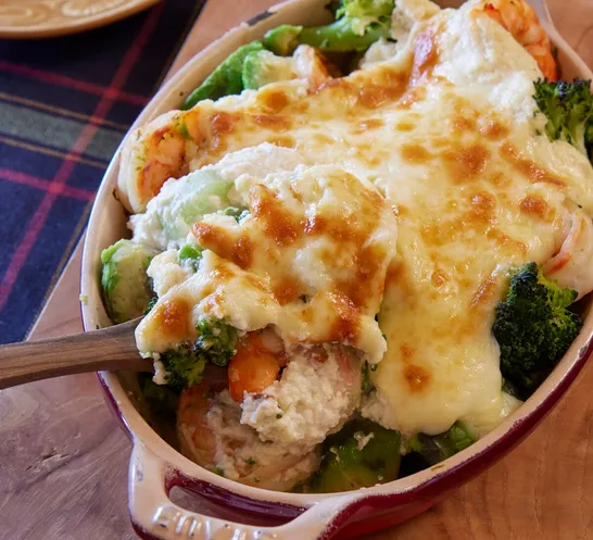 混ぜるだけの簡単ソースで!『ブロッコリーとえびの豆腐ソースグラタン』のレシピ
