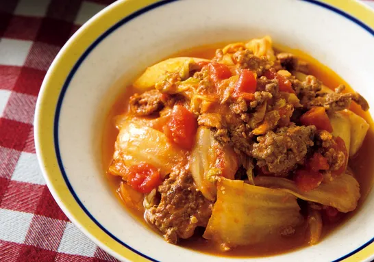 パックから直接フライパンに入れて楽ちん!『ひき肉と白菜のトマトみそ煮』のレシピ【うまみ満点】