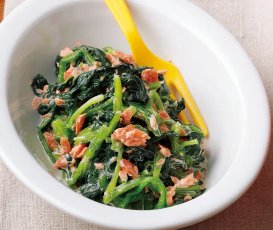【ほぼ5分で完成】〈レンジゆで〉したほうれん草&小松菜とあえるだけ! 簡単副菜3選【さば缶・ツナ缶・鮭フレーク】