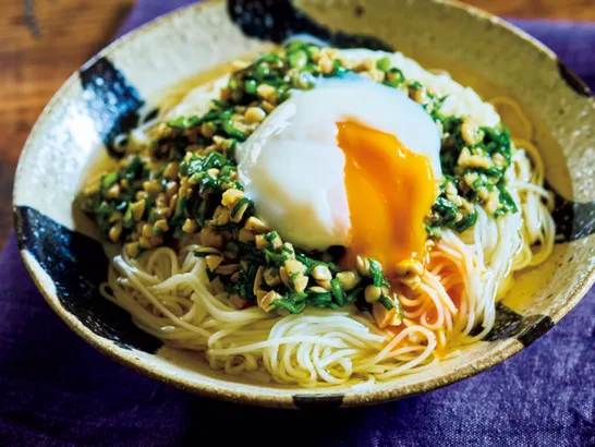 夏バテも疲れも吹き飛ばす!栄養満点『にら納豆ぶっかけそうめん』切って混ぜるだけ