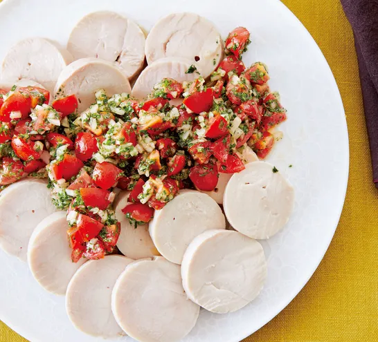 【今からでも間に合う】クリスマスの前菜&おつまみに!『鶏ハムのトマトソースがけ』のレシピ