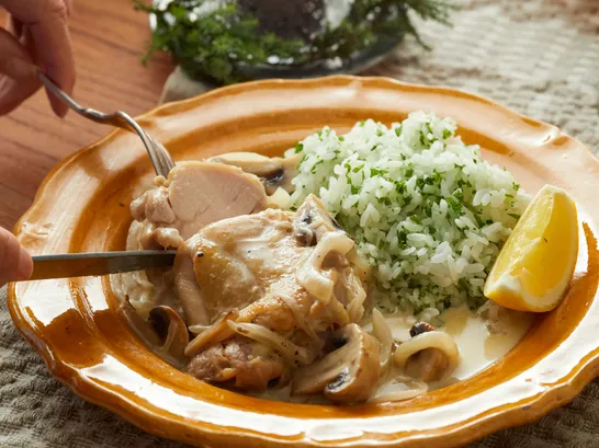 いつもの食材とフライパンで『鶏もも肉のフリカッセ』のレシピ【冬のごちそう】