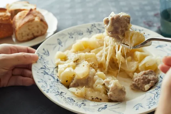 フライパンで簡単に!『手作りサルシッチャとじゃがいものとろとろ煮込み』のレシピ