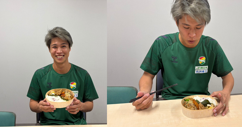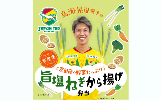 「いつもジェフを応援してくださる皆さんに、ぜひ味わっていただきたいお弁当です。富里産の野菜をたっぷり使い、形や大きさに関係なくおいしさを活かしました。鳥海選手のこだわりも詰まった一品を食べながら、スタジアムで一緒に地域や生産者の皆さんへのエールも届けましょう!」