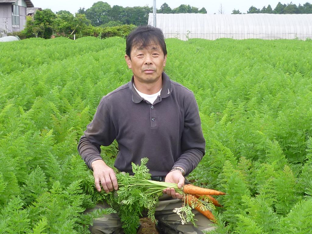 にんじん生産者の柳田さん。11月ごろから旬を迎えます。富里市は全国有数のにんじん生産地です。